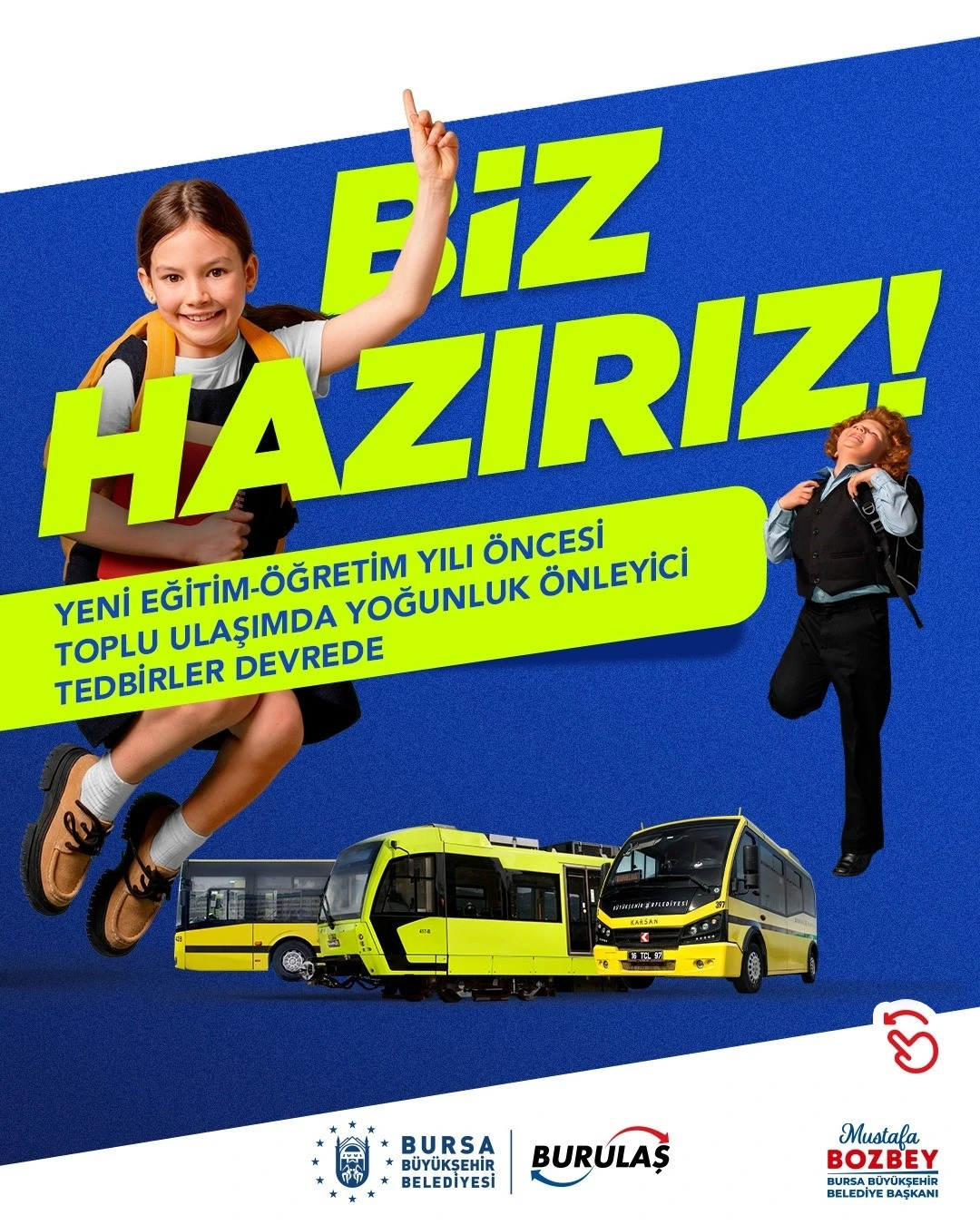 Bursa’da binlerce öğrenci ve velinin beklediği 2025-2026 eğitim öğretim yılı, 8 Eylül Pazartesi günü resmen başlıyor. Bursa Büyükşehir Belediyesi de okulların açılışıyla birlikte oluşabilecek trafik yoğunluğunu önlemek amacıyla önemli kararları hayata geçiriyor. Tüm vatandaşlara büyük kolaylık sağlamayı hedefleyen Büyükşehir Belediyesi, bu kapsamda raylı sistem hatlarına paralel güzergahlarda ek otobüs seferlerini devreye alıyor. Trenlerle ek seferler düzenleyerek sefer sıklığı artırılırken, 130 metro aracı 560 seferle hizmet edecek. Bakımları tamamlanan tüm otobüsler yeni döneme hazır hale getirilirken, 416 otobüs 4 bin 905 seferler hizmet edecek.