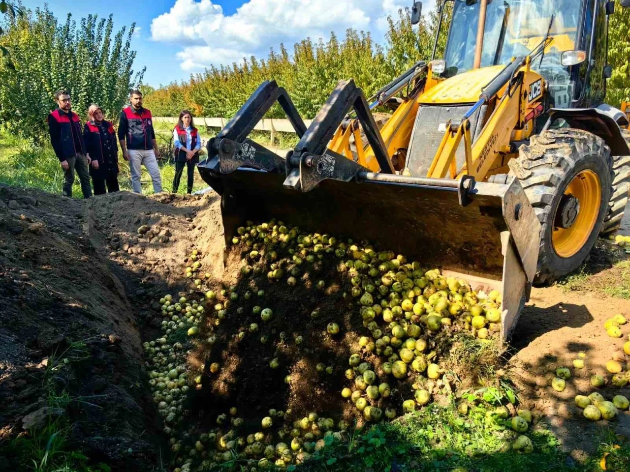Bursa İl Tarım ve Orman Müdürlüğü denetim ekipleri tarafından rutin olarak uygulanan hasat öncesi pestisit denetimi dahilinde ülkemizde yasaklı bulunan zirai ilaç kullanımının tespit edildiği 40 ton armut imha edildi.