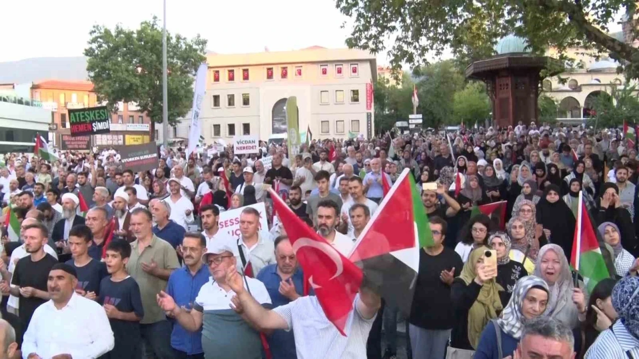 Bursa’da yüzlerce kişi, İsrail’in Gazze zülmüne karşı sessiz kalmamak için yürüdü.