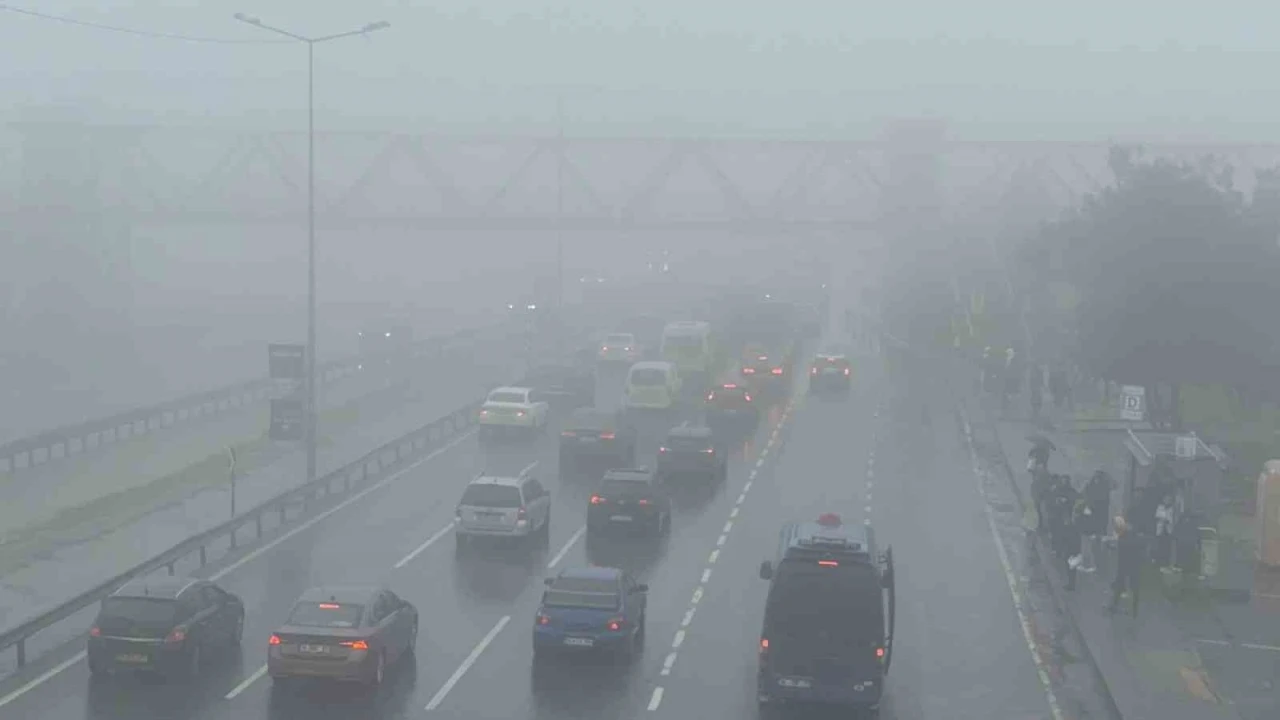 Büyükçekmece'de aniden bastıran sis nedeniyle görüş mesafesi düşü. Yoğun sis nedeniyle bölgede trafik yoğunluğu mevcut.