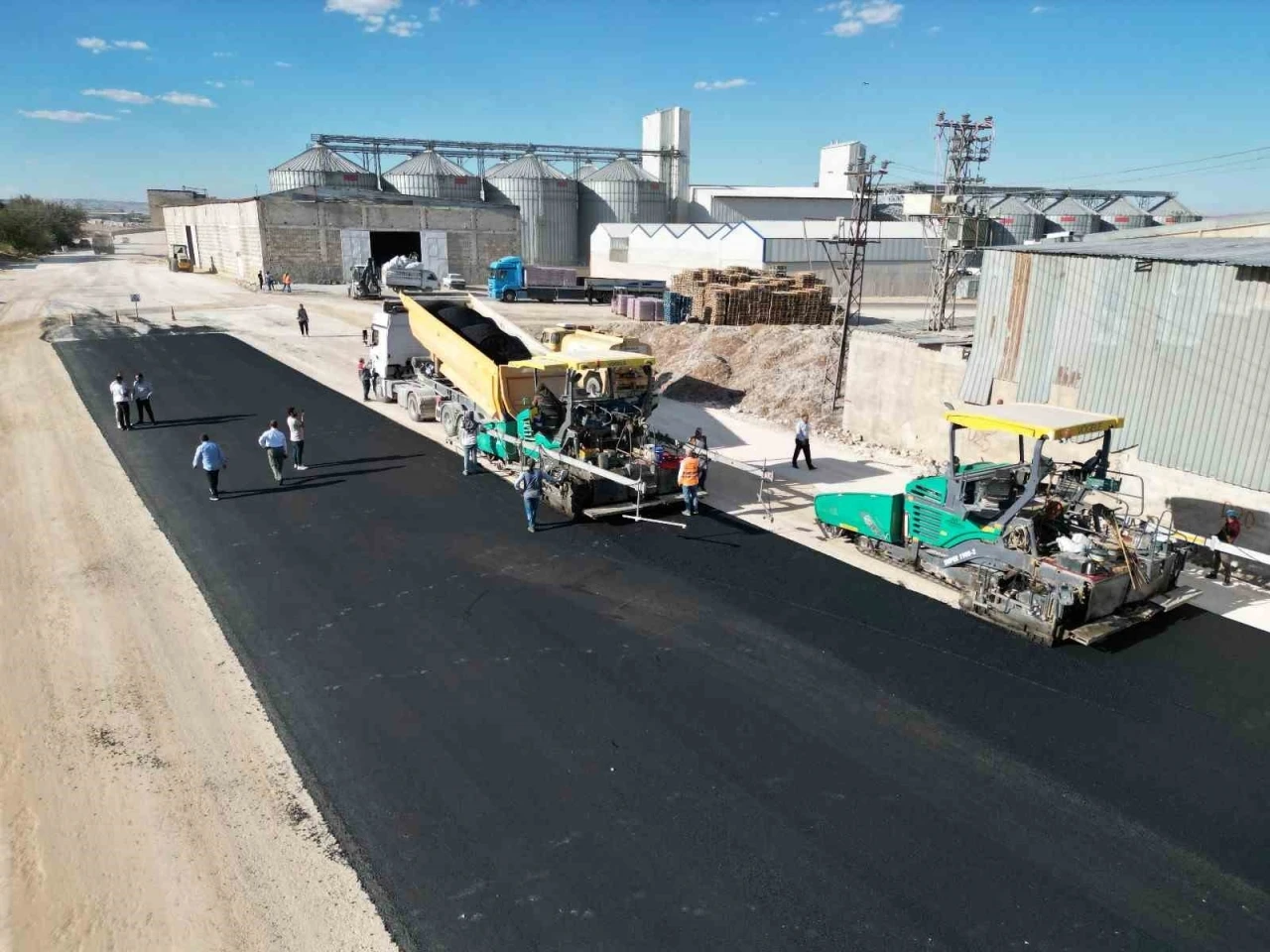 Şanlıurfa Büyükşehir Belediyesi, Eyyübiye’de sanayi bölgelerine ulaşımı kolaylaştıracak olan caddede sıcak asfalt çalışmalarını sürdürüyor.