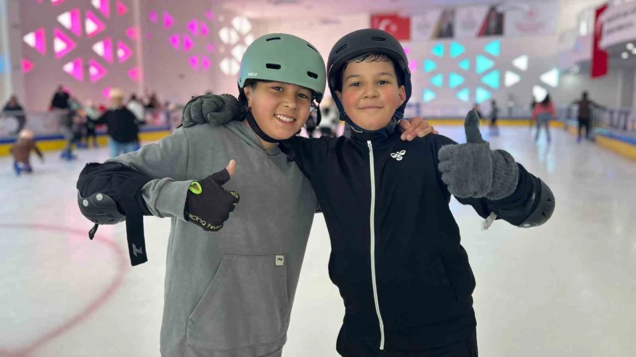 Buz pateni pisti yarıyıl tatilinde çocukların uğrak noktası oldu