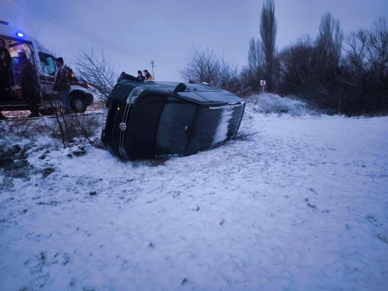 Afyonkarahisar'da yağan kar sonrası buzlanan yolda kayan minibüsün şarampole devrilmesi sonucu yaşanan trafik kazasında 5 kişi yaralandı.