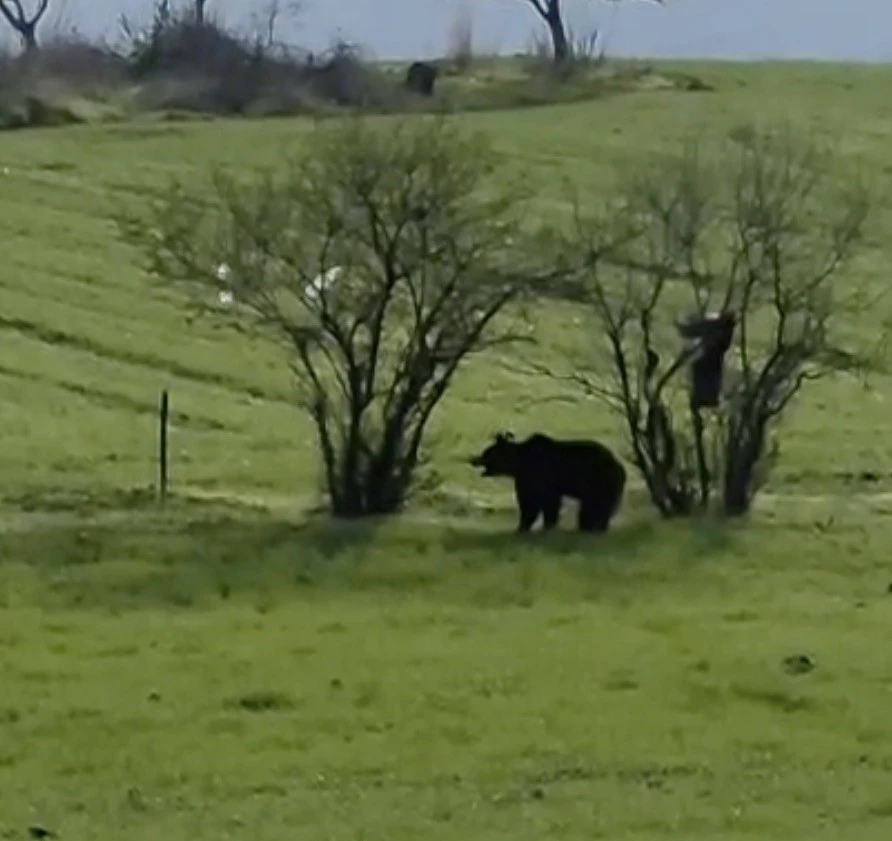 Lapseki’ye bağlı Şahinli köyünde, aracıyla seyir halinde olan Cüneyt Efe köyün hemen girişindeki yolda bir ayı gördü. Efe, o anları telefon kamerasıyla kayıt altına aldı. Ayı, yoldan geçen diğer araçlardan ürkerek kırsal alana doğru kaçarak gözden kayboldu.