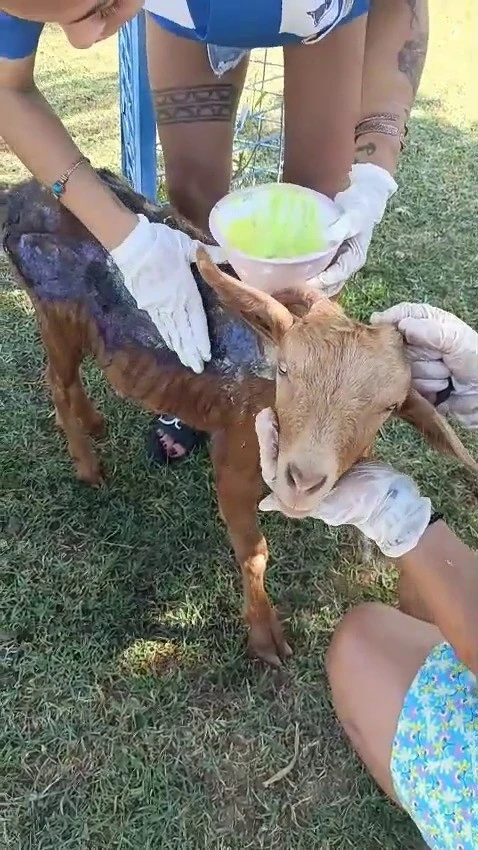 Çanakkale’de orman yangınında yanan keçi Emekli Hayvanlar Çiftliği’nde tedavi altına alındı
