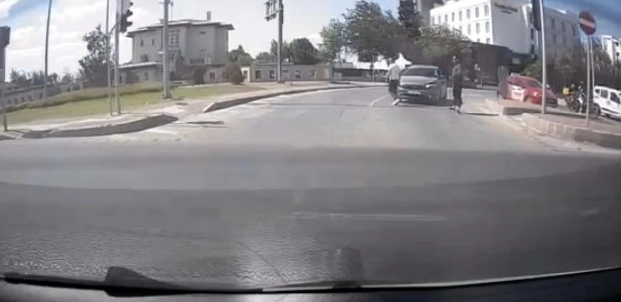 Araç içerisindeki sürücü, üzerine yürüyen G.A.’dan şikayetçi oldu.
