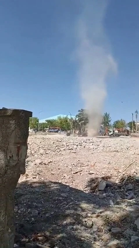 Elazığ’da rüzgarın etkisiyle çıkan mini hortumu çeken çocuğun tepkisi görenleri gülümsetti