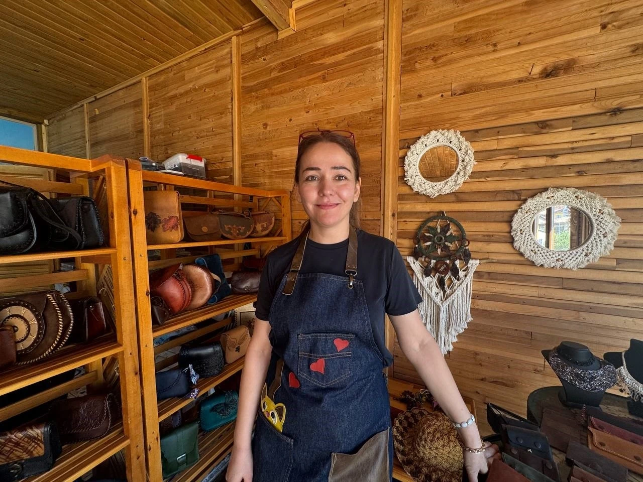 27 yıllık evli ve 2 çocuk annesi olan Deniz Öngün, çocuklarını büyüttükten sonra kendini geliştirmek ve üretmek için el sanatlarına yöneldiğini belirterek, deriyle tanıştığı ilk günden bu yana geçen süreçte yalnızca kendini değil, yüzlerce kadını da bu sanatla tanıştırdığını ifade etti. Bugün 16 kursiyeriyle çalışmalarını sürdürdüğünü belirten Öngün, kadınlara seslenerek, "Halk Eğitimi Merkezi’nin kurslarına katılıp ev ekonomisine katkıda bulunun" dedi. "Derinin ruhunu hissediyor"