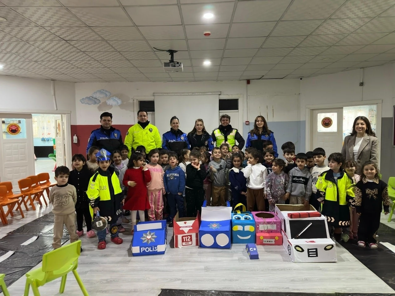Toplum Destekli Polislik Büro Amirliği ile Trafik Tescil ve Denetleme Büro Amirliği ekipleri, Zübeyde Hanım Anaokulunu ziyaret ederek polislik mesleği, genel güvenlik kuralları ve trafik bilinci konularında öğrencileri bilgilendirdi. Etkinlik kapsamında öğrencilerle eğitici trafik uygulaması yapılırken, temel trafik işaretleri ve güvenli yaya davranışları uygulamalı olarak anlatıldı. Polis ekipleri, minik öğrencilerle birebir sohbet ederek onların merak ettiği soruları yanıtladı ve güvenli yaşam farkındalığını pekiştirdi.