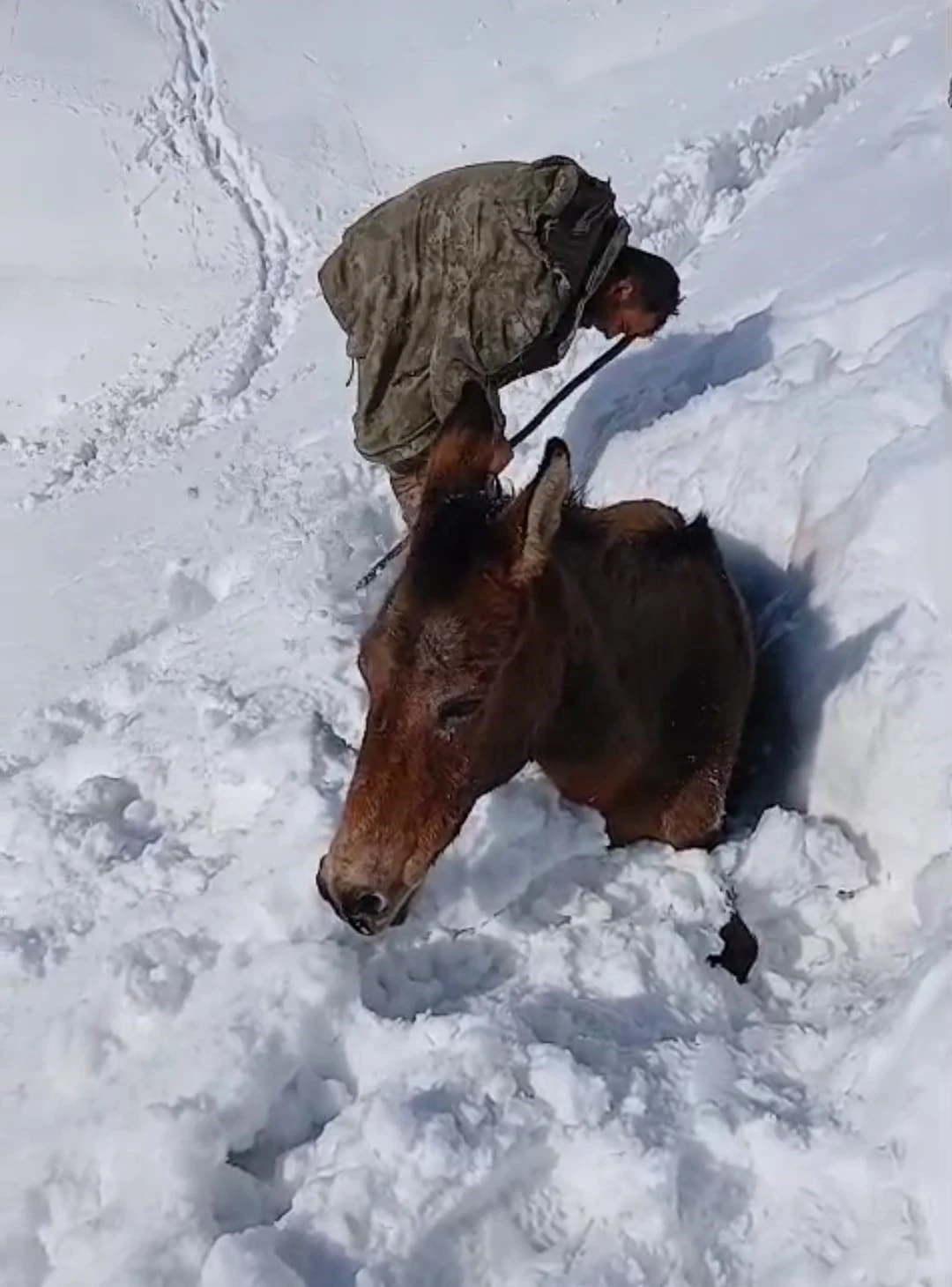 Edinilen bilgilere göre, geçtiğimiz günlerde etkisini artıran kar yağışı sonrası dağlık bölgede bulunan katır sürüsü, bulundukları yerden köylere inemedi. Karın içinde ilerlemekte güçlük çeken katırlar mahsur kaldı. Bölgede devriye görevi yapan güvenlik korucuları tarafından fark edilen katırlardan birinin donarak telef olduğu, bir katırın ise yarıya kadar kara gömülerek hareket edemediği tespit edildi. Devriye görevi yapan güvenlik korucuları, kara saplanan katırı yoğun çabalar sonucu bulunduğu yerden çıkararak, diğer katırlarla birlikte en yakın köye indirdi. Kurtarılan katırların köylülere teslim edildiği öğrenildi.