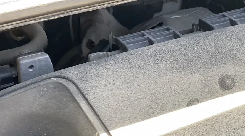 Hatay’da aracın kaputuna giren yavru kedi, telefondan miyavlama sesi açılarak kurtarıldı.
