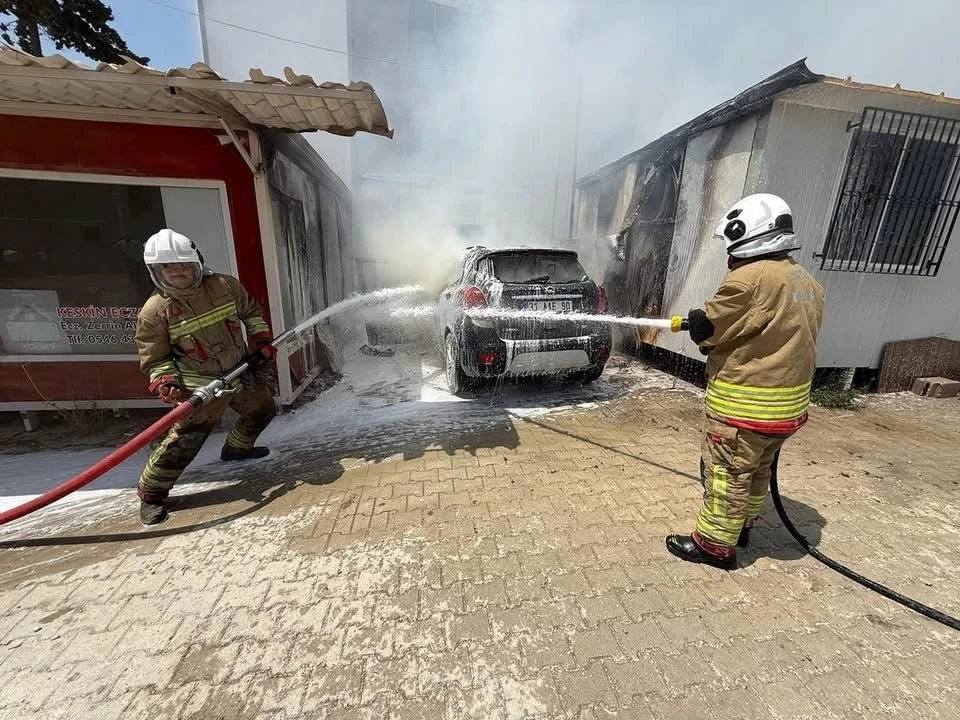 Defne’de konteynerde çıkan yangın araca sıçradı