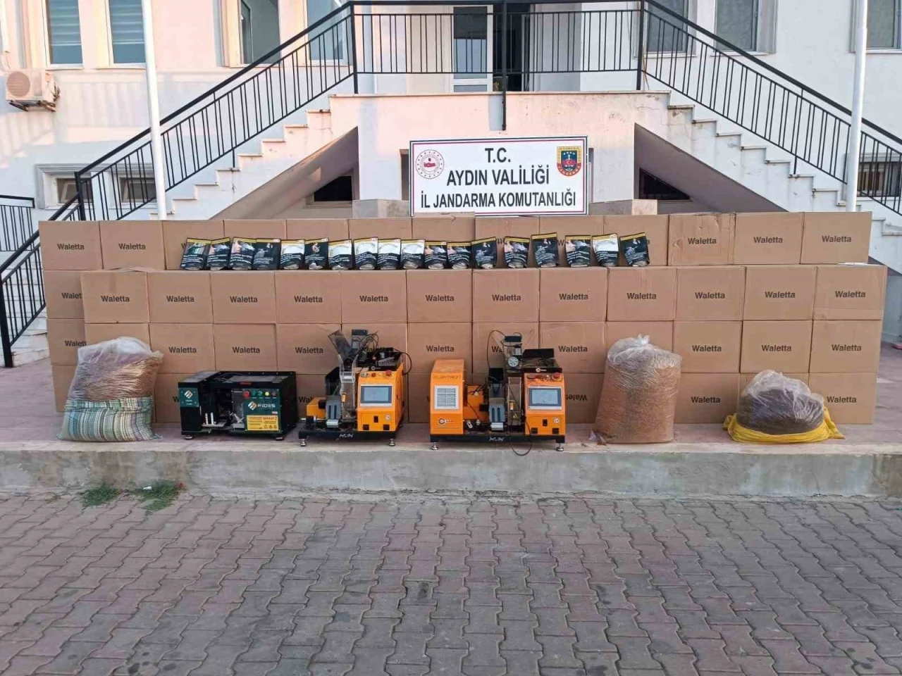 Aydın İl Jandarma Komutanlığı Didim İlçe Jandarma Komutanlığınca icra edilen takipli faaliyet kapsamında şüpheli 1 şahsın iş yerinde arama yapıldı. Yapılan aramada, 93 bin 9800 adet doldurulmuş makaron, 73 kg kıyılmış tütün, 3 adet Makaron Doldurma Makinası olmak üzere, piyasa değeri toplam 1 milyon 200 bin TL değerinde ürün ele geçirildi. İş yeri sahibi hakkında adli süreç başlatıldığı öğrenildi.