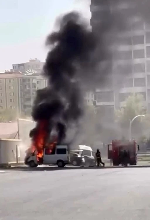 Diyarbakır’da bir minibüs park halindeyken alev aldı.