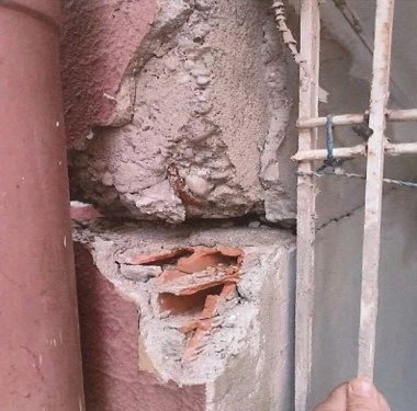 "Dış cephede kolon şeklinde estetik amaçlı tuğla duvardan diş yapılmış olup, zemin dolgusundaki oturma neticesinde, zemin kat kuzey doğu cephesindeki dış cephe tuğla duvarında inşa edilen dişlerin kirişle birleşim bölgesinde çatlamalar-ayrışmalar meydana gelmiştir. Bu dişler kolon şeklinde inşa edildiğinden vatandaşlarca kolon patlaması olarak değerlendirilmiştir. Yapının taşıyıcı sisteminde çatlak ve kırığa rastlanmamıştır. Yapının zemin kat dış duvarında çatlamaların daha önce de olduğu, sıva ile onarıldığı gözlenmiştir."
