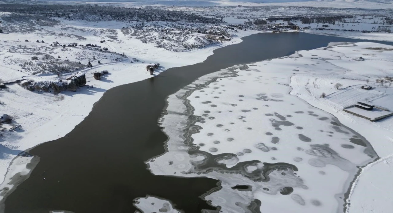 Tarihi yaklaşık 3000 bin yıl öncesine dayanan Frig Vadisi’ndeki Emre Gölü dondu. İhsaniye ilçesinde yağan karın ardından hava sıcaklıklarını sıfırın altında eksi 7 derecelere kadar düşmesi sonrası göl dondu. Donan göl yanı başındaki Frigler’den kalma eserler ile kartpostallık manzaralar açığa çıkardı. Buz tutmuş göl ve eserler seyrine doyumsuz bir manzara oluşturdu.