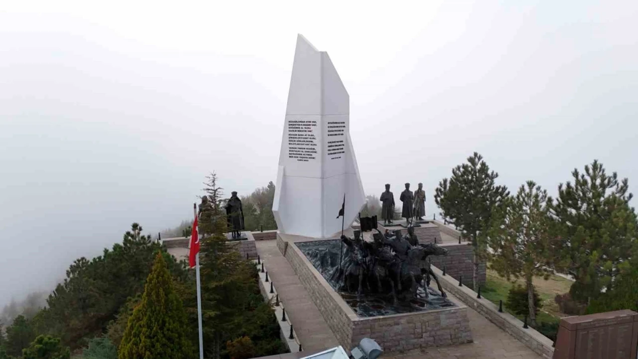 Ankara’nın Polatlı ilçesindeki Duatepe Anıtı, siste kartpostallık görüntüler oluşturdu.