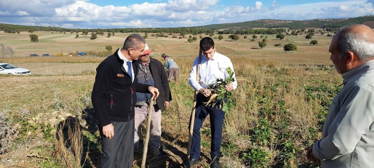 Dumlupınar kaymakamı teltik, şeker pancarı hasadını yerinde inceledi