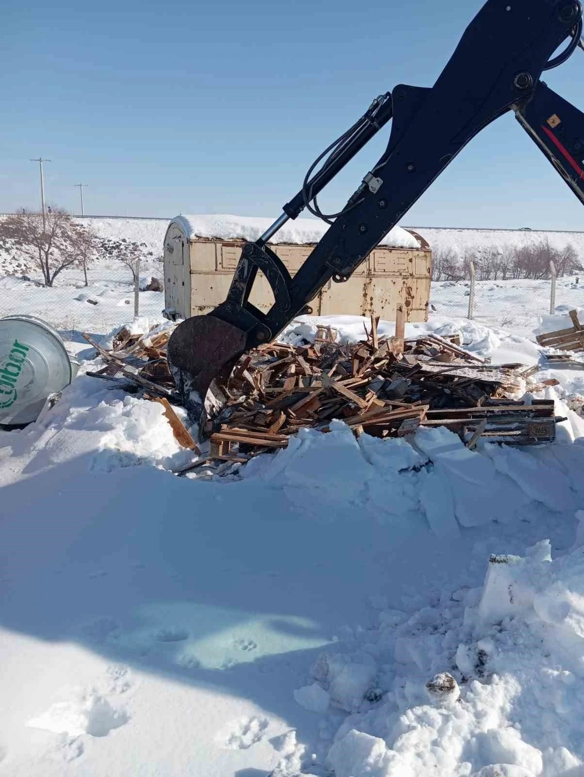 Eğil Belediyesi ekipleri okul için odun ve palet kırdı
