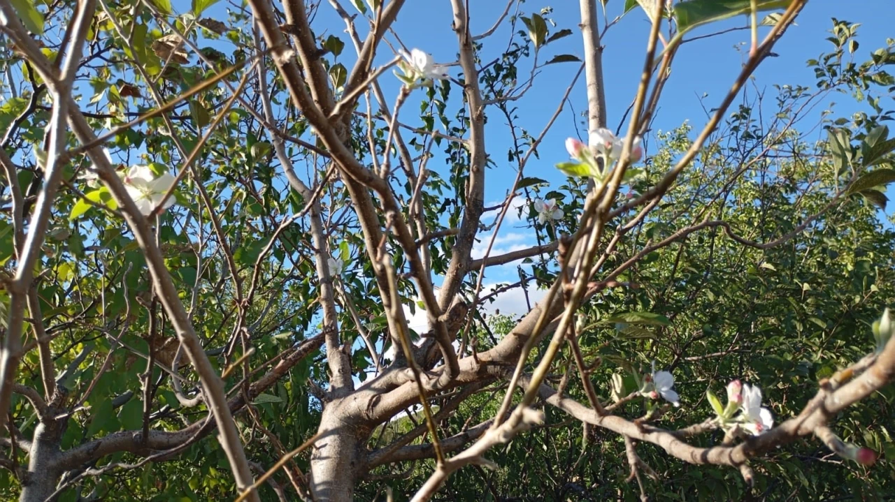 Sonbahara girilmesi rağmen tüm dalları çiçek açan elma ağacı, görenleri hayrete düşürdü.