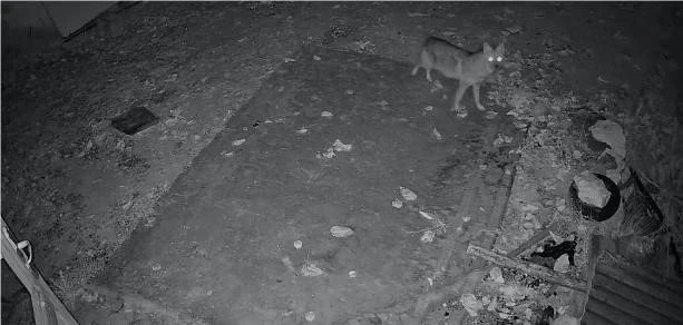 Elazığ'da yiyecek arayan çakal güvenlik kameraları tarafından görüntülendi.