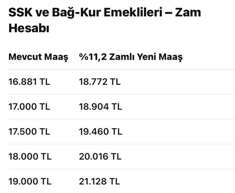 SSK ve Bağ-Kur Emeklileri – Zam Hesabı