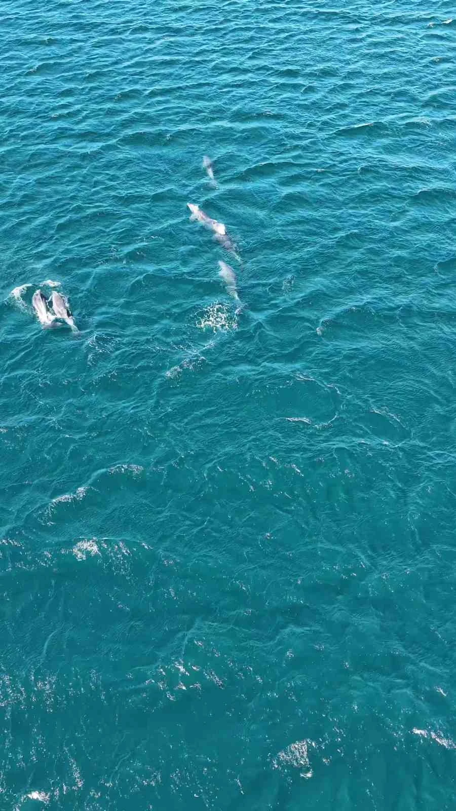 Erdek Körfezi’nde 6 adet yunus, suyun altında kaybolup tekrar yüzeye çıkarak adeta görsel şölen sundu. O anlar dronla da kaydedilirken, yunuslar kısa süre sonra gözden kayboldu.
