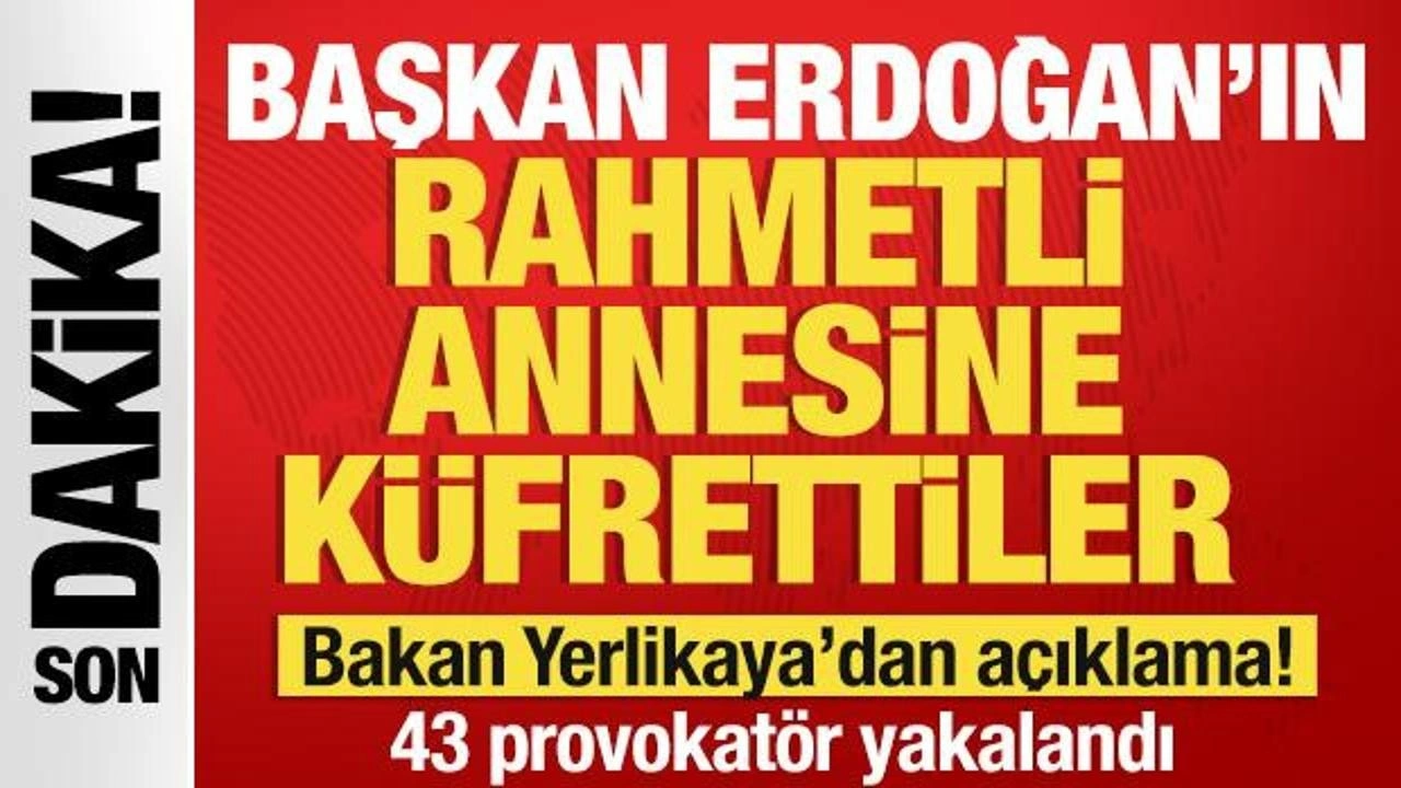 İçişleri Bakanı Ali Yerlikaya, İstanbul Saraçhane'deki gösteri sonrası Cumhurbaşkanı Recep Tayyip Erdoğan'a, merhum annesine ve ailesine yapılan hakaretlerle ilgili gerekli işlemlerin başlatıldığını bildirdi.