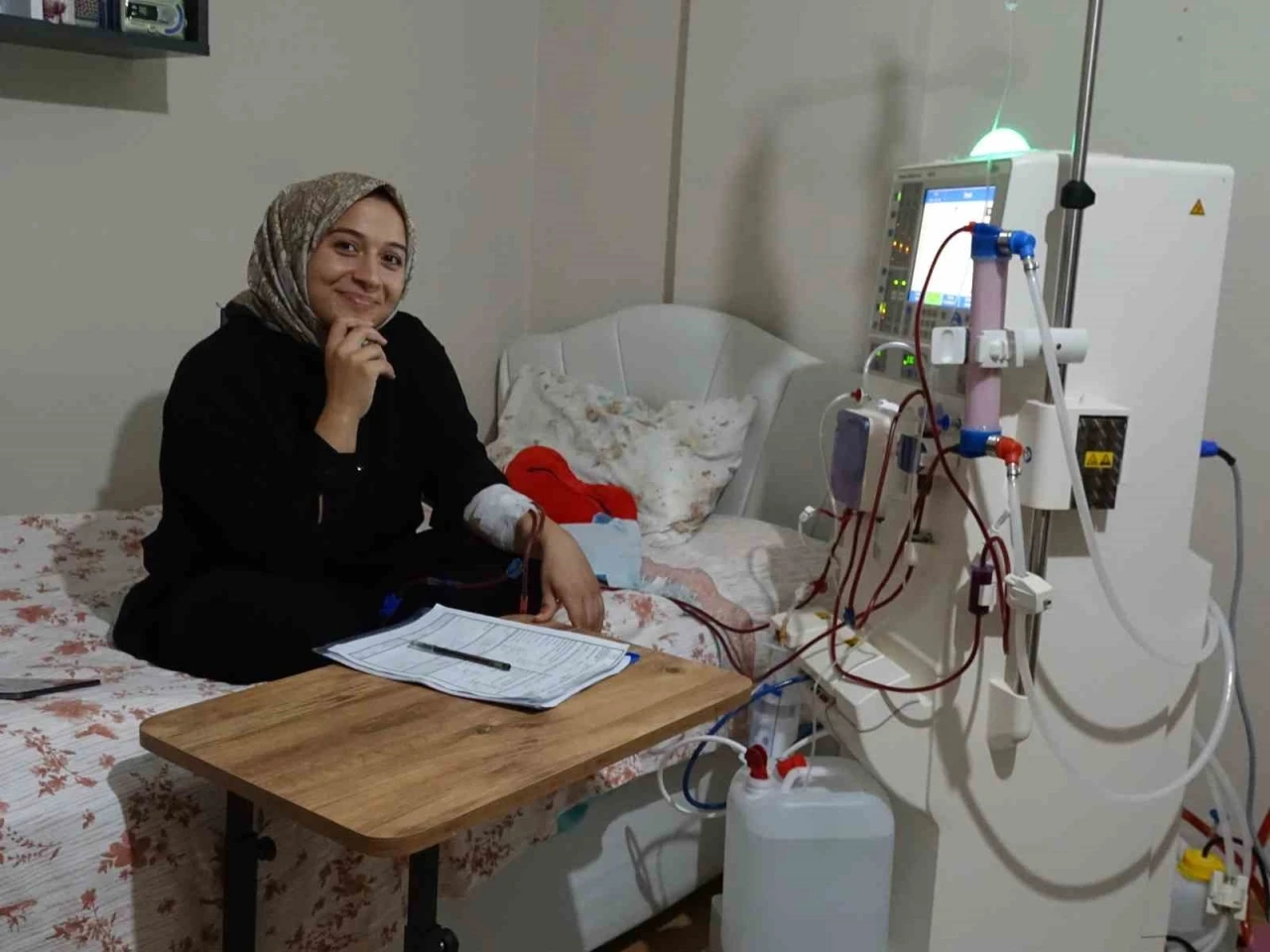 Rize’de 27 yaşındaki diyaliz hastası Edagül Genç, kendi diyalizini 15 dakikada kendisi hazırlayıp evinde kendisi uyguluyor.