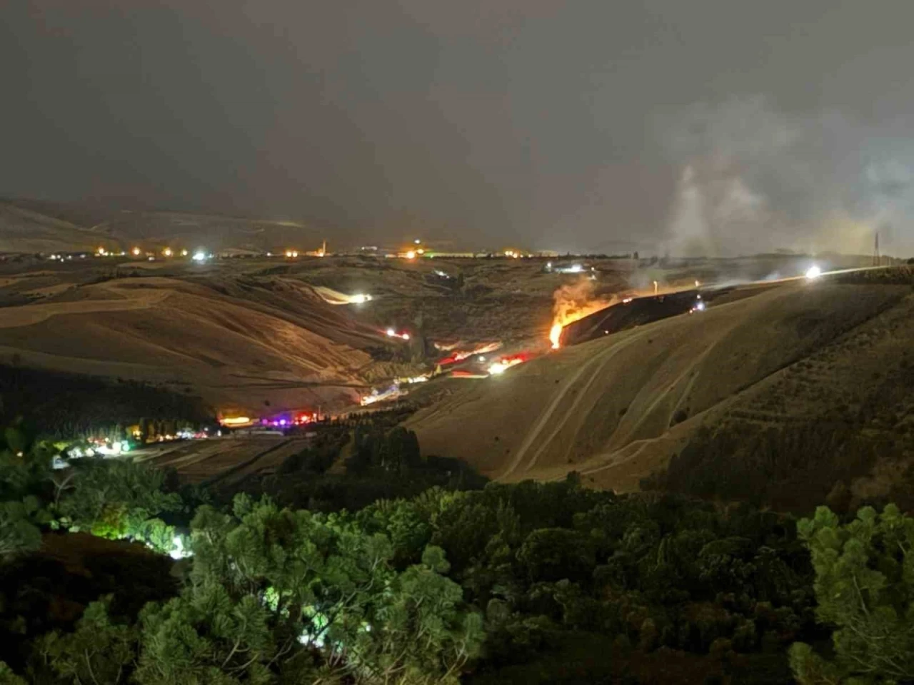 Bölgede güvenlik tedbirleri alınırken, ekipler ağaçlık alanda süren yangını söndürmek için çalışmasını sürdürüyor.