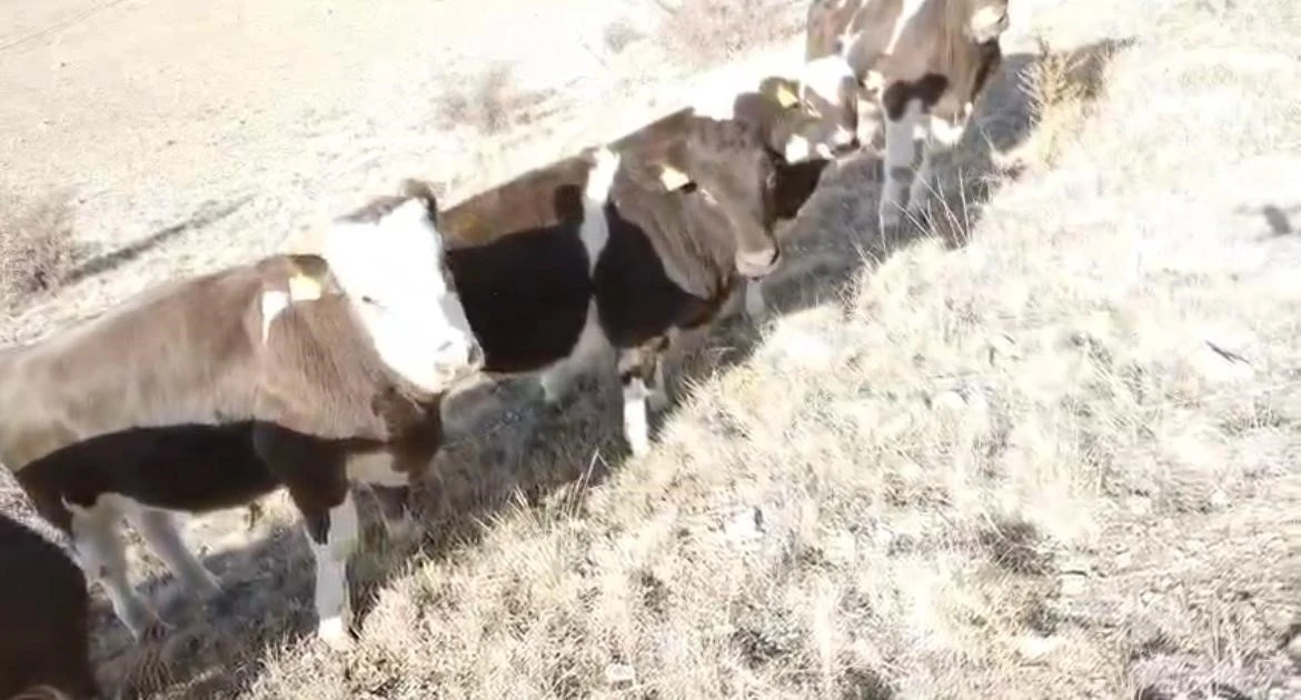 Nevşehir'de kaldıkları ahırın duvarını yıkarak firar eden inekler jandarma ekipleri tarafından drone ile bulundu.