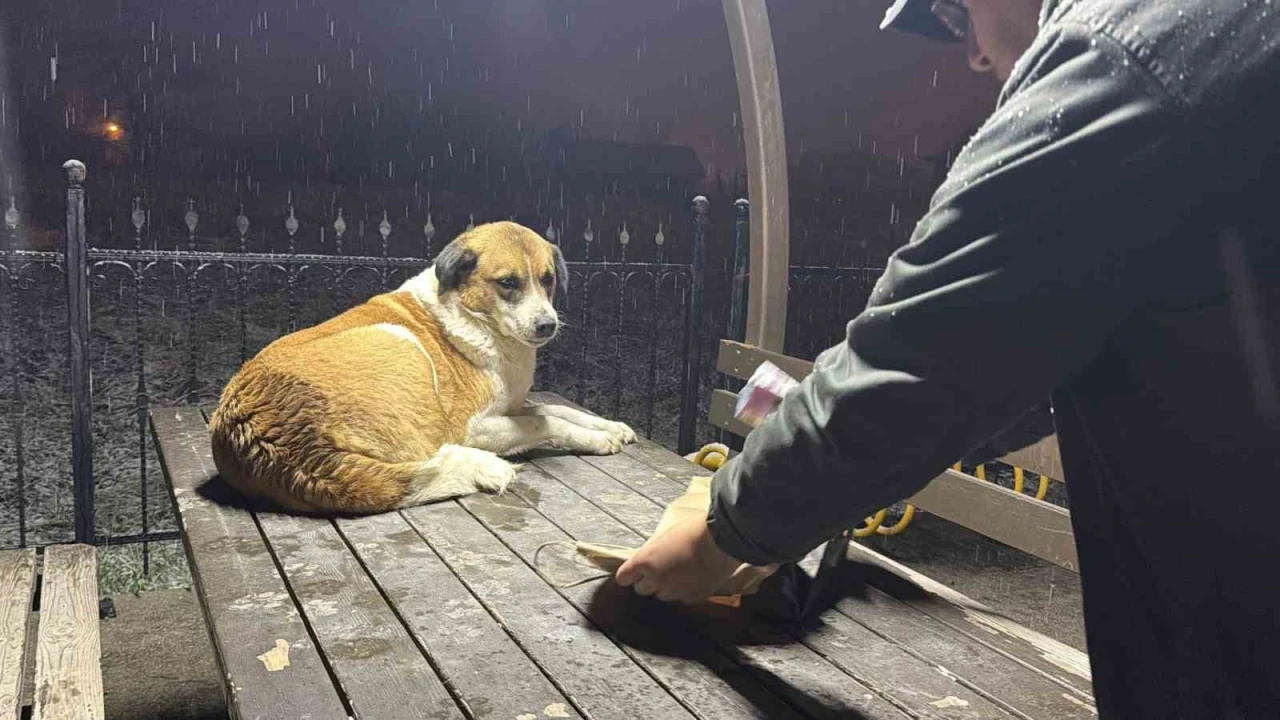 Düzce’de haber nöbeti için yollarda olan gazeteciler, kar yağışı nedeniyle yiyecek bulmakta zorluk çeken sokak canlılarına mama verdi.