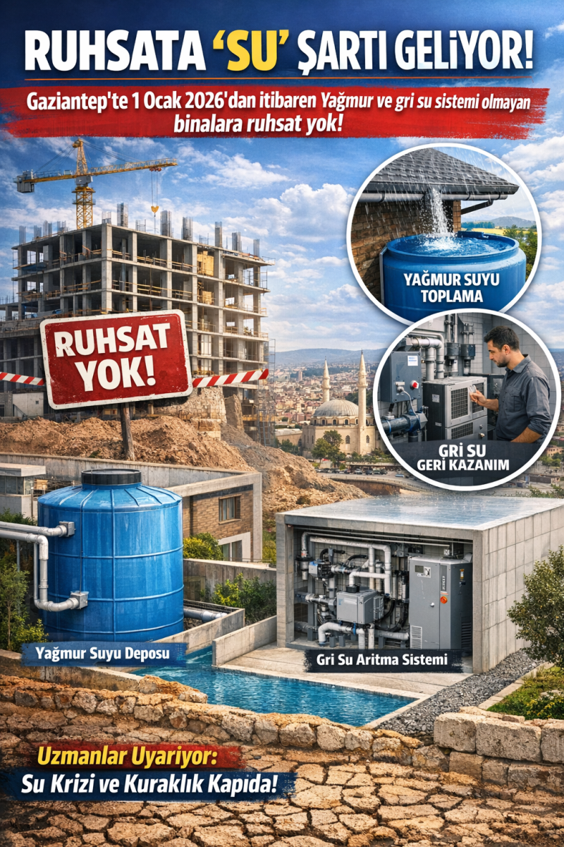 Yeni düzenleme ile birlikte Gaziantep’te yapılacak büyük ölçekli projelerde su tasarrufu ve sürdürülebilirlik, artık tercih değil zorunluluk haline geliyor.