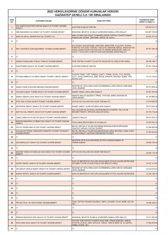 .Aile, Gaziantep’in gururu olmaya devam ederken, dikkat çeken bir diğer unsur ise listede yer alan 64 iş insanı ve 35 kurumun ismini açıklamayı tercih etmemesi oldu. Türkiye genelinde de benzer bir durum yaşanmış, 73 vergi rekortmeni ve 34 kurum da isminin açıklanmasını istememişti.
