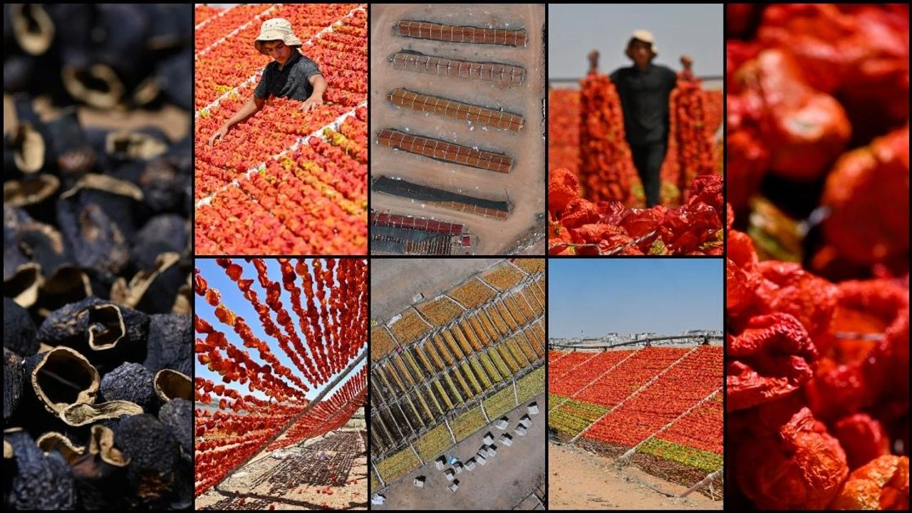 Sıcaklığın en yüksek ölçüldüğü kentlerden Gaziantep'te sıcak hava günlük yaşamı olumsuz etkilerken kurutmalıklara fayda sağlıyor.