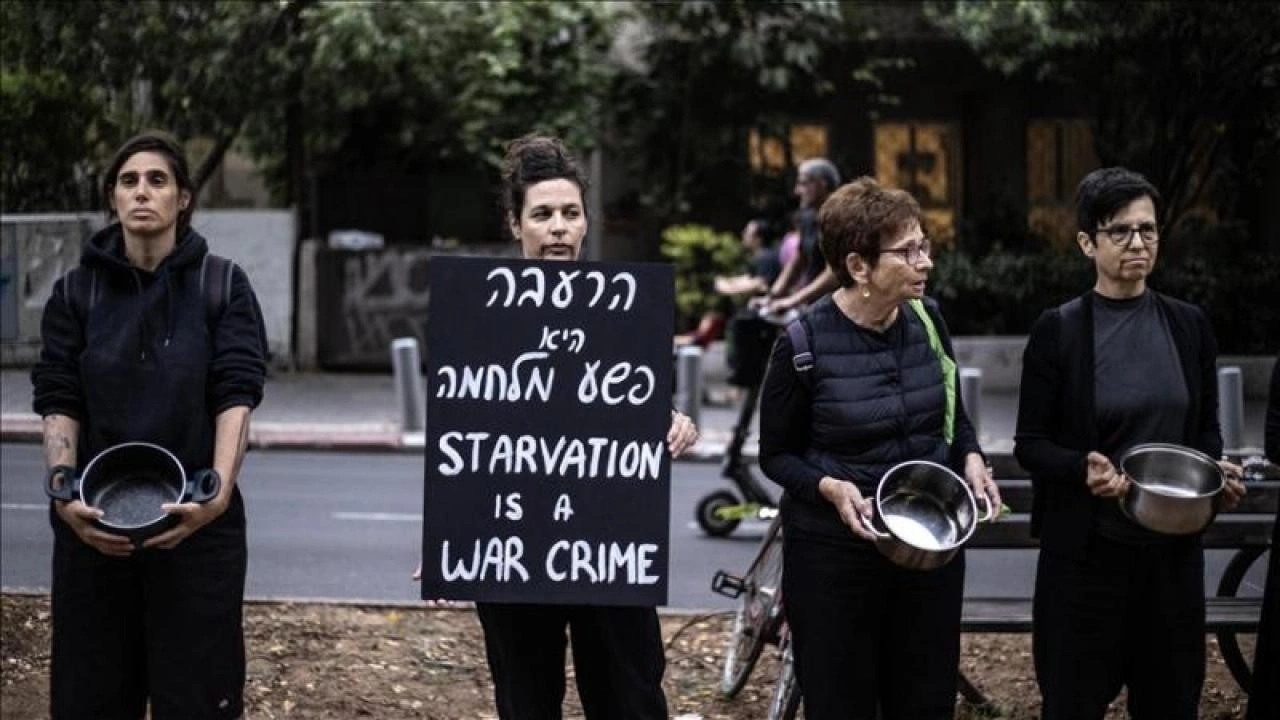 Onlarca İsrailli eylemci ellerindeki tencerelerle tek sıra halinde cadde kenarına dizilerek Gazze'de İsrail'in insani yardım girişine izin vermemesi nedeniyle yaşanan gıda krizine dikkati çekti.