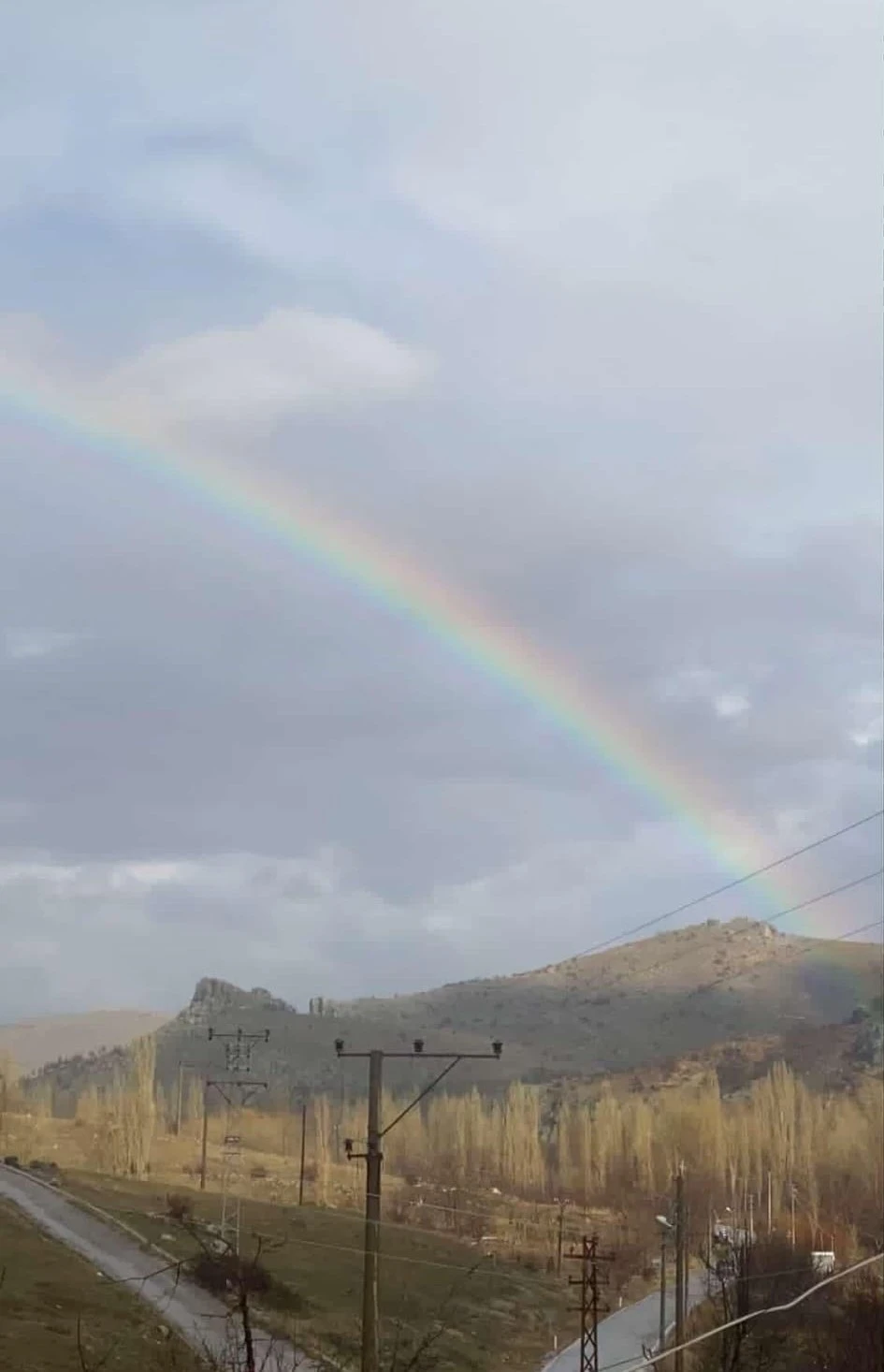 Afyonkarahisar’ın şuhut ilçesinde yağmurun ardından ortaya çıkan gökkuşağı görüntüsü görsel güzellik oluşturdu.