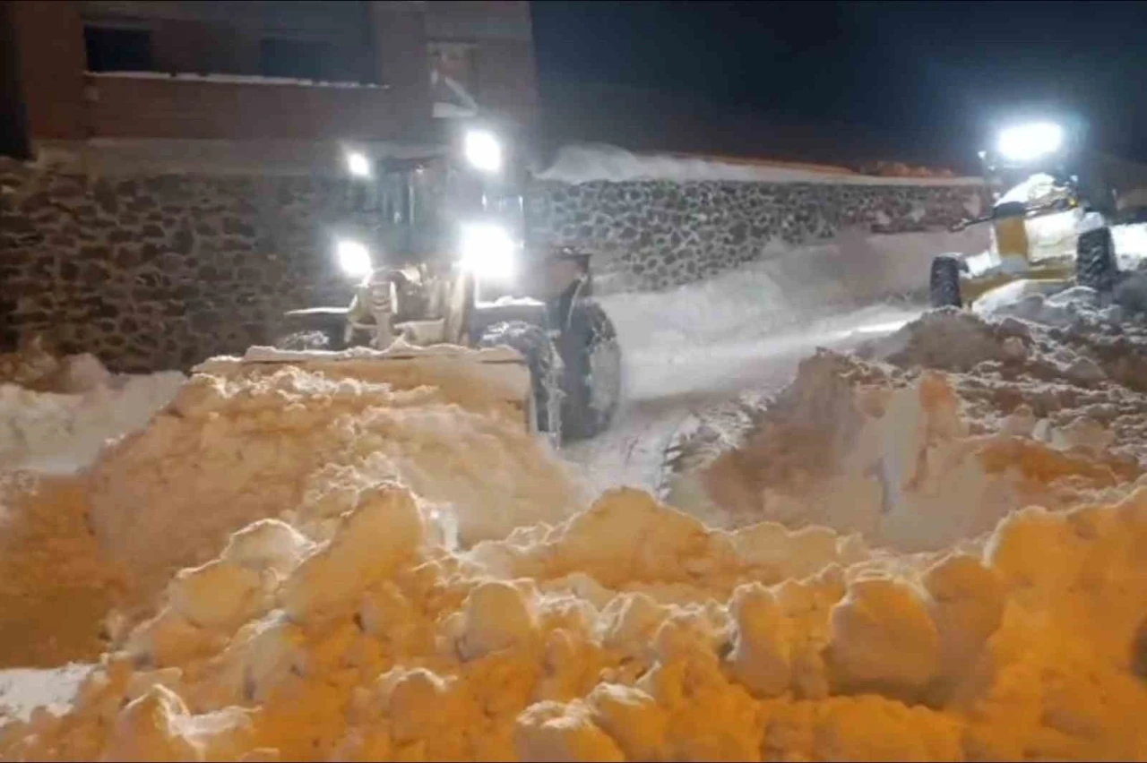 Kentin en yüksek rakımdaki köyü olan 2 bin 170 metredeki Demirören köyünde yoğun yağış ve tipi nedeniyle kapanan yolu kar kalınlığının fazla olması nedeniyle greyder ve lastik tekerlekli yükleyiciyle gece geç saatlere kadar sürdüren ekipler yolu ulaşıma açtı.