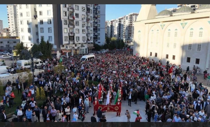 Filistin’e destek yürüyüşüne Gaziantep Büyükşehir Belediye Başkan Yardımcısı Abdulkadir Sökücü, Şehitkamil Belediye Başkanı Umut Yılmaz, siyasi partilerin il başkanları, sivil toplum kuruluşu temsilcileri ve binlerce vatandaş katıldı.