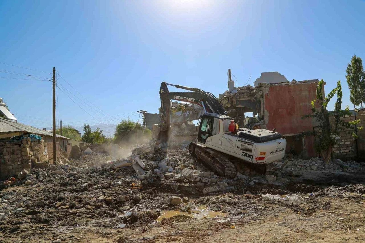 Van Büyükşehir Belediyesi, Hatuniye Caddesi’nin devamında bulunan ve yol çalışmaları nedeniyle kamulaştırılan yapıların yıkımına devam ediyor.