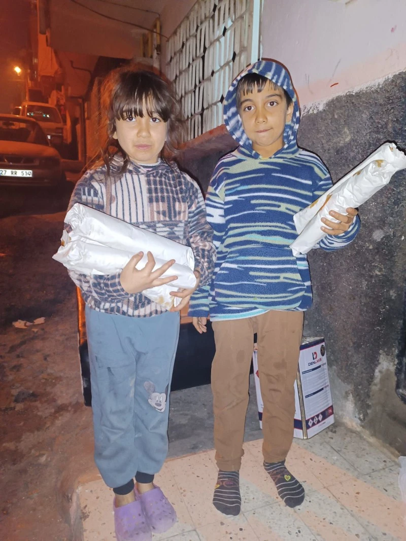 Öte yandan, Düztepe Mahallesi’nde ise gündüz saatlerinde siparişi verilen 150 adet döner, ayran ve tatlı ihtiyaç sahiplerine ulaştırıldı. Dürümler Adil Usta’dan temin edildi.