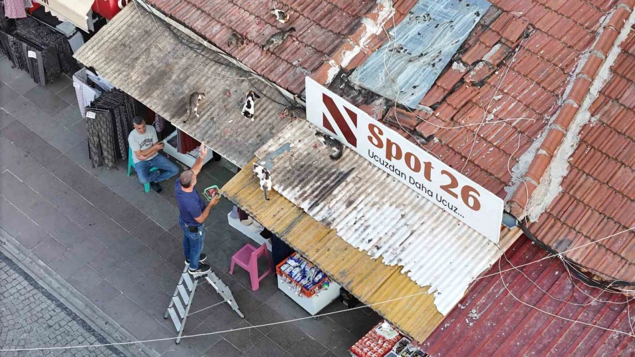 Eskişehir’de esnaflık yapan Mesut Turan, her gün merdivene çıkıp çatıda yaşayan kedileri besleyerek cebinden aylık 15 bin TL harcıyor.