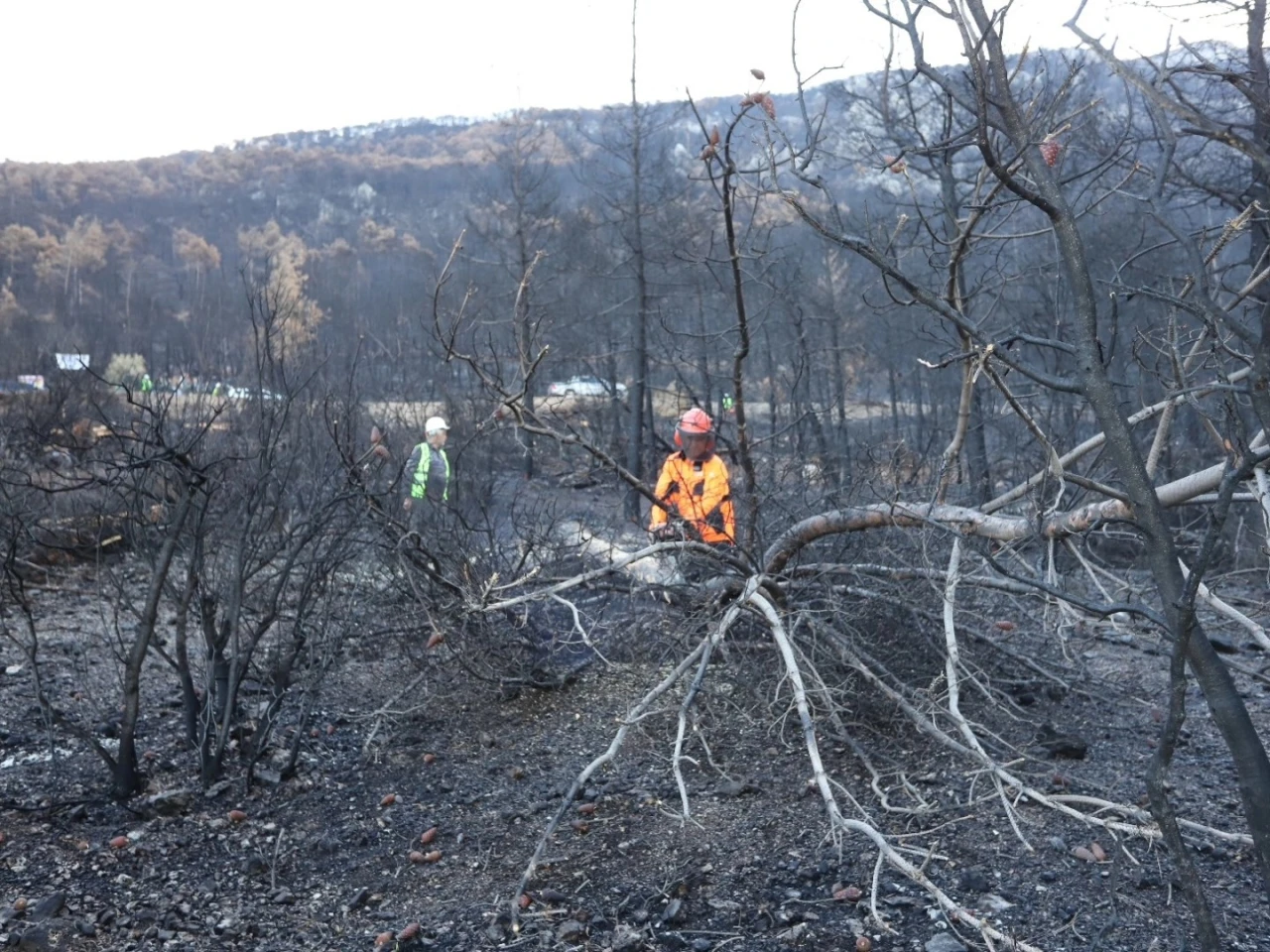 DENİZLİ (İHA) – Denizli’de geçtiğimiz Ağustos ayında çıkan orman yangınında yüzlerce hektar alanın zarar gördüğü Cankurtaran Mahallesi Honaz Dağı Milli Parkında yeniden ağaçlandırma çalışmaları devam ediyor. Cankurtaran Mahallesi Honaz Dağı Milli Parkında 23 Ağustos’ta başlayan ve yüzlerce hektar arazinin zarar gördüğü bölgede yeniden ağaçlandırma çalışmaları devam ediyor. Denizli Orman Bölge Müdürü Ahmet Köle, Cankurtaran Mahallesi Honaz Dağı Milli Parkında yangın sonrası kesintisiz devam eden yeniden doğaya kazandırma çalışmalarını yerinde inceledi. Denizli Orman İşletme Müdürü Tamer Uysal ve teknik personelden yürütülen çalışmalar hakkında bilgiler alan Bölge Müdürü Köle, sonrasında yanık sahanın temizleme çalışmalarında çalışan vatandaşlarla görüştü. Yangından zarar gören alanda ağaçların kesimi ve iş makineleriyle arazi düzenleme işlemlerinin yapıldığını ifade eden Orman Bölge Müdürü Ahmet Köle, düzenleme ve yeniden ağaçlandırma çalışmaları kapsamında bölgeye yaklaşık 2 milyon 500 bin fidan dikileceğini kaydetti.