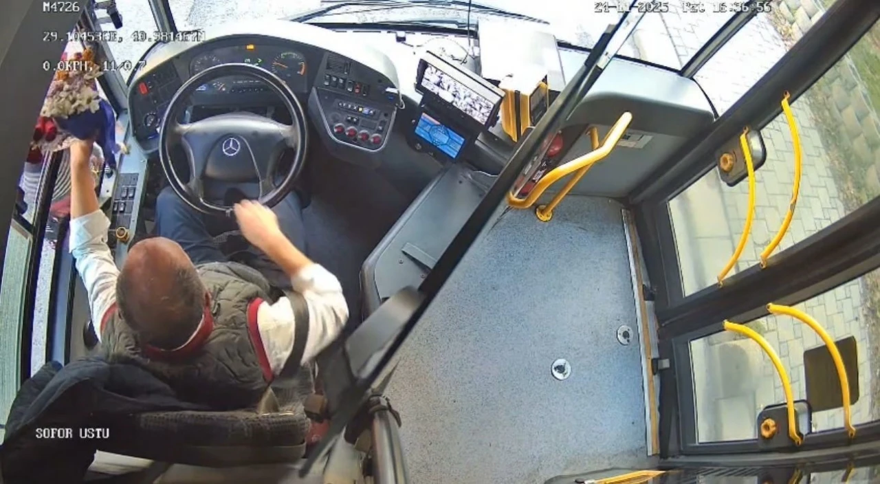 İstanbul’un Yenidoğan - Kozyatağı hattında çalışan İETT kaptanı Şahismail Ayaztekin, 24 Kasım Öğretmenler Günü’nde, otobüse binen iki öğretmen için yaptığı sürprizle herkesin gönlünü kazandı. Öğretmen kartı ile biniş yapan yolcularının kimliğini fark eden tecrübeli kaptan, rotası üzerinde bir kırmızı ışıkta durduğu sırada yanındaki çiçekçiden hemen bir buket aldı ve yolcularına hediye etti. Bu beklenmedik ve anlamlı davranış, otobüsteki diğer yolcular tarafından coşkulu alkışlarla karşılandı. O anlar, aracın iç kamerasına da yansıdı.