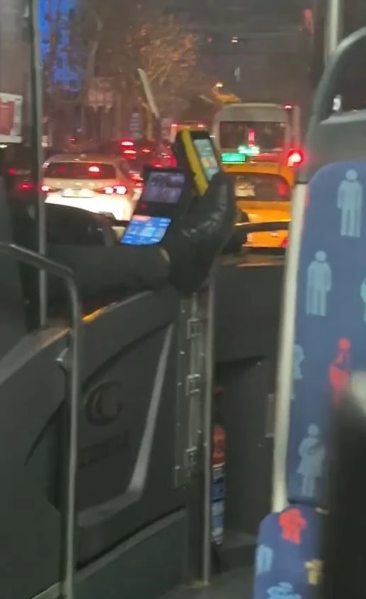 Edinilen bilgiye göre 622 Yenidoğan-Mecidiyeköy hattında sefer yapan İETT otobüsünde dün akşam saatlerinde şok eden bir olay yaşandı. Otobüsün şoförü, ayağını akbil basma alanına uzatarak araç kullandı. Tepki çeken olay, otobüste bulunan yolcular tarafından kayda alındı. Hem yolcuların hem kendisinin hem de trafikteki diğer sürücülerin canını tehlikeye atan şoförün rahatlığı görenleri hayrete düşürdü. Görüntülerin ortaya çıkmasının ardından şoförün sertifikasının iptal edilerek, işine son verildiği öğrenildi.