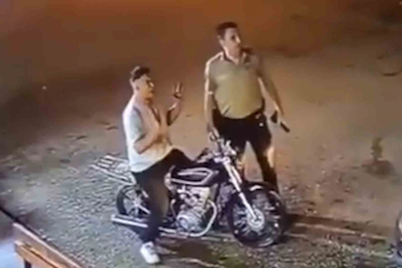 Kırıkkale’de park halinde plakasız olduğu tespit edilen motosikletin yanındaki iki gencin bekçilerden yaya olarak kaçmaya çalıştığı anlar, güvenlik kamerasınca kaydedildi.