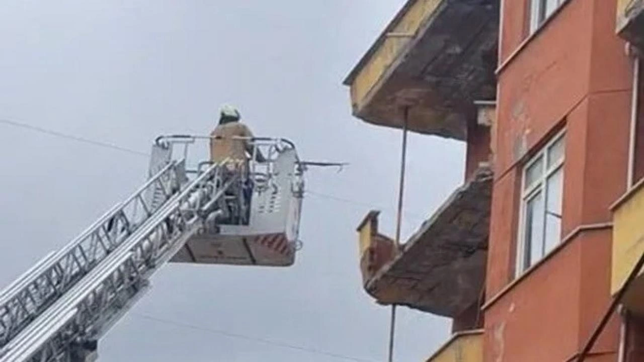 İtfaiye ekipleri merdiven aracıyla çöken balkona ulaşarak tehlikeli olan diğer parçaları da levye yardımıyla kopardı.