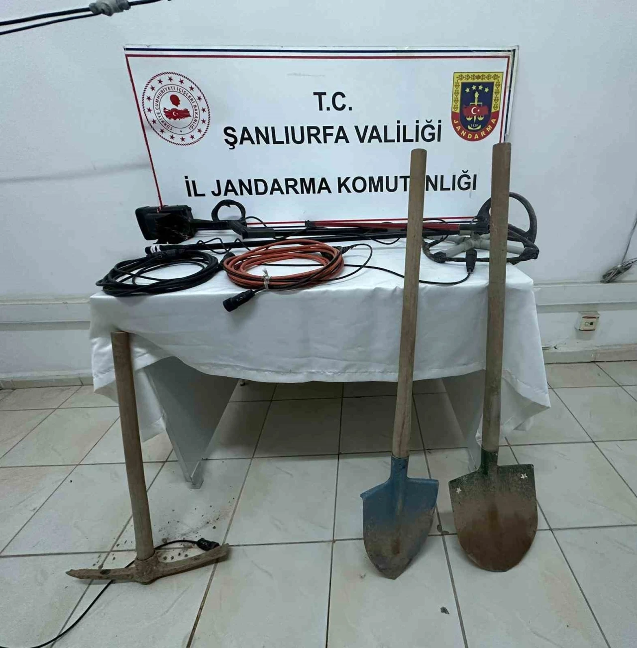 Edinilen bilgiye göre, Şanlıurfa İl Jandarma Komutanlığı Jandarma Suç Araştırma Timi (JASAT) ile Suruç İlçe Jandarma Komutanlığı ekipleri define bulmak için kaça kazı yapan şahıslara yönelik operasyon gerçekleştirdi. Operasyonda define aradığı belirlenen E.Ş., M.Ş., Z.D. ve A.Y. isimli şahıslar suçüstü yakalandı. Çevrede yapılan incelemede ise 2 adet detektör, 2 adet kürek, 2 adet kazma, 2 adet kablo ile 1 adet define arama tarama malzemesi ele geçirildi.
