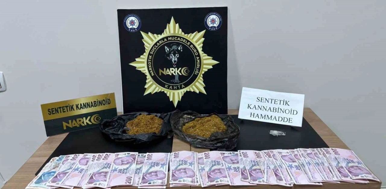 Kahta İlçe Emniyet Müdürlüğü Narkotik Suçlarla Mücadele Büro Amirliği ekiplerince gerçekleştirilen operasyonda; 2 parça halinde toplam 144,7 gram tütüne emdirilmiş sentetik kannabinoid, 1 parça halinde 0,50 gram sentetik kannabinoid hammaddesi ile suçtan elde edildiği değerlendirilen 9 bin 750 lira ele geçirildi.