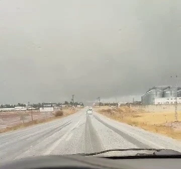 Adıyaman’ın Kahta-Sincik yolu üzerinde bulunan Türkiye Petrolleri tesisleri mevkiinde etkili olan dolu yağışı, yolun kısa sürede beyaza bürünmesine neden oldu.